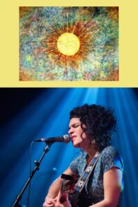 Ses textes sont teintés de musique du monde, de sons , d’hommage à la nature et sa voix magnétique enveloppe et nourrit de lumière celui qui l’écoute.